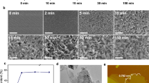 The cloud picture of the displacement distribution profiles after processing was simulated using ANSYS engineering software. The model used to simulate the cloud picture of the displacement distribution consisted of three plates made of two-dimensional HKUST-1 nanosheets of dimensions 1000 × 1000 × 10 nm3; the intersecting lines of the three plates converged at perfect 60° angles and the facets of all adjacent plates formed a dihedral angle of 70.529°. We used a model of (random-etching MOFs) octahedral HKUST-1 of dimensions 1000 nm × 1000 nm (bottom square) × 750 nm (height for the rectangular pyramid) to simulate the cloud picture of the displacement distribution. The material properties were as follows: density, 1.22 × 10−6 ng nm−3; elastic modulus, 5 GPa41; and Poisson’s ratio, 0.342. The octahedron and plates were constrained as follows. The displacements of the most external nodes of the constrained edges were zero in three directions. Simulated loads were applied to the plates as 20-nN forces at the centres of 10 × 10 nm2 regions15.