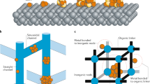 We prepared quantities of CASFZU-1 on the order of kilograms using our method, which is reliable and simple to perform (Fig. 4a). We significantly improved the rate of cyclic carbonate production with strong Lewis acid Cu sites in CASFZU-1 (Supplementary Figure 40) and high affinity for CO2 (Fig. 4b, Supplementary Figures 41 and Supplementary Note 2 and Supplementary Table 5). CASFZU-1 exhibited the best catalytic reaction performance (Fig. 4c and Supplementary Figures 42–44) of the five different MOFs examined. In carbon fixation with 2-methyloxirane, CASFZU-1 converted a comparable amount of CO2 per gram to that accumulated by 210 m2 of undisturbed tropical rainforest30 (Supplementary Note 3 and Supplementary Figure 45). Notably, the experiments showed that the co-catalyst tetrabutylammonium bromide played a vital role in the ring-opening step for cyclic carbonate synthesis, and no significant catalytic activity was observed in the absence of tetrabutylammonium bromide. After normalising the BET, the cycloaddition yields of small molecules catalysed by CASFZU-1 were about four and two times higher than those of HKUST-1 and random-etching MOFs, respectively (Fig. 4d and Supplementary Figure 25). The advantages of stacked-nanosheet MOFs are greater for large-sized molecules. CASFZU-1 has large mesopores (4.0 nm), resulting in conversion efficiencies of 87.3% ± 1.2% and 72.9% ± 3.0% for 2-octyloxirane and 1,2-epoxydodecane, respectively (Fig. 4d, Supplementary Figure 46 and Supplementary Table 6), whereas these were 2.2% ± 0.5% and 3.7% ± 1.3% for HKUST-1 (with the largest entrance pore of 0.9 nm)31; these conversion efficiencies were only 39.2% ± 1.9% and 36.1% ± 2.4%, respectively, in random-etching MOFs (mesopore size, 3.6 nm). As the random-etching MOFs have similar mesopore size to CASFZU-1, these marked differences in catalytic efficiency between them may have been because the three-coordinated Cu sites have the highest activity among the four coordination states. The catalytic cycloaddition reaction of CO2 with 2-methyloxirane and 2-ethyloxirane had TOF of 54.0 h−1 and 32.7 h−1 in CASFZU-1, respectively, and these catalytic efficiencies were more than twofold higher than the most efficient Cu-based MOFs previously reported (Fig. 4e, Supplementary Tables 7 and 8). Furthermore, CASFZU-1 exceeded the maximum TOF for large substrate (1,2-epoxydodecane, TOF = 25.34 h−1) by 20-fold, because the large mesopores promote mass-transformation (Fig. 4e and Supplementary Table 9).