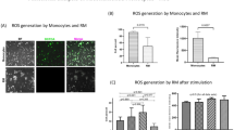 Intracellular ASC-speck formation was evaluated by the Time of Flight Inflammasome Evaluation in CD14+ monocytes using a polyclonal unconjugated rabbit anti-ASC (N-15)-R antibody (catalog sc-22514-R, SantaCruz Biotechnology), and a secondary monoclonal donkey anti-rabbit antibody Alexa Fluor-488 (catalog A21206, Life Technologies), both at 1:1000 dilution. HIF-1α expression was detected in CD14+ monocytes using Alexa Fluor-647 mouse anti-human HIF-1α (BD Biosciences, Clone 54, catalog 565924) at 10 μl per 5 × 105 cells, using a transcription factor buffer set (BD Biosciences) following manufacturer’s instructions. Cells treated in the same conditions and without staining for HIF-1α were used as a background control. Monocytes were determined from PBMCs by CD3− CD14+ selection, and P2X7 receptor surface expression was determined in CD16−/+/++ monocytes using the monoclonal anti-P2X7 L4 clone conjugated with APC62. Active caspase-1 was measured in monocytes using the specific fluorescent probe FLICA-660 Caspase-1 Assay Kit (Immunochemistry Technologies) following the manufacturer’s instructions. Production of ROS was measured in monocytes using the red mitochondrial superoxide indicator MitoSOX (Life Technologies) following the manufacturer’s instructions. For gating strategy used in flow cytometry see Supplementary Figs. 6 and 7. The detection of extracellular particles of ASC was performed on 0.5 ml of human plasma by flow cytometry using a polyclonal unconjugated rabbit anti-ASC (AL177) antibody (catalog AG-25B-0006-C100, Adipogen) at 1:1000 dilution, and a secondary Alexa Fluor 647F(ab′) fragment of goat anti-rabbit IgG (H+L) (catalog A21246, Life Technologies) at 1:2000 dilution14. For the determination of ASC specks, HIF-1α expression, and FLICA, monocytes were selected using anti-CD14 PE (clone 61D3, catalog 50-0149-T025, Tonbo biosciencies) or anti-CD14 APC-H7 (clone MφP9, catalog 560180, BD Biosciences). For MitoSOX determination monocytes were selected using anti-CD33 APC-vio770 (clone REA775, catalog 130-111-139, Miltenyi). Samples were analyzed by flow cytometry using FACS Canto (BD Biosciences) and the FCS express software (De Novo Software). For multiparametric flow cytometry experiments a fluorescence minus one (FMO) control was included following recommendation of the recent flow cytometry guides for immunological studies63.