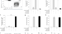 Heritable F0 mice with Slc17a5 or Ctla-4 insertion/deletion mutations. a Schematic diagram of the sgRNA targeting site in the mouse Slc17a5 locus. PAM = protospacer adjacent motif. b PCR sequences encompassing the Slc17a5 target region from wild-type (wt) mice and from representative mutant mice (#4 and #16) generated by two methods of microinjection: (1) into zygotes using sgRNA; and (2) into one blastomere of two-cell stage embryos using sgRNA. PCR products were sequenced and those showing overlapping sequencing traces were cloned. The subsequent individual clones were then sequenced. Mutated bases are labeled in red and deleted nucleotides are indicated by hyphens. Numbers and percentages of the mutated bases are listed on the right. c Sequencing traces of PCR products from representative mutant mice generated by the aforementioned two microinjection methods. Overlapping sequencing traces among the mutant mice indicate the presence of more than one allele among these mice, compared with wt mice. The mutations’ start positions are indicated by black arrows. d Germline transmission of the Slc17a5 lethal mutations in F1 progeny is shown by sequencing traces of PCR products encompassing the Slc17a5 target region from a representative mutant F1 mouse. Overlapping sequencing traces indicate heterozygous mice. The black arrow shows the mutation starting position. e Schematic diagram of the sgRNA targeting site in the mouse Ctla-4 locus. f Sequencing traces of PCR products encompassing the Ctla-4 target region from wt mice and from a representative mutant F0 mouse. The mutant mouse’s overlapping sequencing traces indicate the presence of more than one allele, compared with wt mice. The mutation start position is indicated by a black arrow. g PCR sequences of the Ctla-4 target region of wt mice and a representative mutant mouse generated by microinjection into one blastomere of two-cell embryos. The mutated base is labeled in red and deleted nucleotides are indicated by hyphens