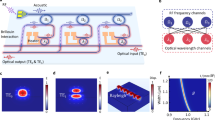 A detailed description of measurement methods is provided in the Supplementary Note 2. In brief, the phononic circuit devices are characterized by two methods. The first is an optical measurement of the mechanical vibration of the sample surface by a home-built vibrometer with vibration amplitude sensitivity of around 70 fm Hz−1/2. The principle of the vibrometer is based on a quadrature measurement of vibration-modulated light signals by a heterodyne interferometer. The capability of simultaneous detection of amplitude and phase allows us to fully characterize the traveling acoustic modes in waveguides and ring resonators. In the frequency domain, it offers wide-range frequency spectrum. The second method is an electrical transmission measurement, by which the frequency spectrum S21 of the phononic device can be obtained conveniently using a network analyzer. This method is particularly suitable for the measurements in a cryogenic environment.