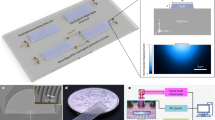 A detailed description of fabrication procedures is provided in the Supplementary Note 2. In brief, our PnIC devices are patterned by electron-beam lithography and dry etching processes on GaN-on-sapphire wafers with the GaN layer thickness of 5 μm or 10 μm. The IDTs are patterned by electron-beam lithography using polymethyl methacrylate (PMMA) resist, followed by the deposition of 10-nm-thick chromium and 50-nm-thick gold and a subsequent lift-off process in acetone.