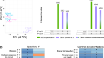 Mucosal curettage samples and epithelial cell cultures (incubated with or without S. pneumoniae for 3 h) were collected in RNALater (ThermoFisher) and stored at −80 °C. RNA extraction was performed using the RNEasy micro kit (Qiagen) and genomic DNA was removed with on column DNA digestion or with the Turbo DNA-free Kit (Qiagen). Extracted RNA quality was assessed and quantified using a BioAnalyser (Agilent 2100). For mucosal curettage samples, library preparation and RNA sequencing (Illumina Hiseq 4000, 15 lanes in total with seven samples per lane, 100 bp and 75 bp paired-end reads) were performed at the Beijing Genome Institute (China) or the Wellcome Sanger Institute (UK), respectively. For the Detroit 562 samples, library preparation was performed using the Kappa Hyperprep kit (Roche Diagnostics) and sequencing was undertaken by the Pathogens Genomic Unit (UCL) on the Illumina Nextseq using the Nextseq 500/550 High Output 75 cycle kit (Illumina) according to manufacturers’ instructions, giving 15–20 million 41 bp paired-end reads per sample.