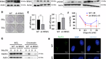 To identify acetylation site(s) on RRM2, Flag-tagged human RRM2 was overexpressed in HeLa cells. Cells were then treated with TSA and NAM for 16 h. Overnight in-gel trypsin digestion was performed on the immunoprecipated Flag-RRM2 resolved on SDS-PAGE gel, and peptides were extracted with a solution of 5% formic acid and 50% acetonitrile and speed vacuumed to dryness. Each peptide sample was resuspended in loading buffer (0.1% formic acid, 0.03% trifluoroacetic acid, 1% acetonitrile), and peptide eluents were separated on a 15 cm 1.9 µm C18 (Dr. Maisch, Germany) self-packed column (New Objective, Woburn, MA) by a Dionex Ultimate 3000 RSLCnano UPLC and monitored on an Orbitrap Fusion Mass Spectrometer (Thermo Fisher Scientific, San Jose, CA). Elution was performed over 80 min gradient at a rate of 300 nl/min with buffer B ranging from 1 to 35% (buffer A: 0.1% formic acid in water, buffer B: 0.08% formic acid in acetonitrile). The mass spectrometer cycle was programmed to collect at the “top speed” mode with a cycle time of 3 s. The MS scans were collected at a resolution of 120,000 (100–1000 m/z range, 400,000 AGC, 50 ms maximum ion time), and the MS/MS spectra were acquired by the ion trap after HCD (high-energy collision dissociation) fragmentation with an isolation width of 2 m/z, 30% collision energy, 10,000 AGC target, and 50 ms maximum ion time. Dynamic exclusion was set to exclude previous sequenced peaks for 20 s within a 10 ppm window. The Proteome Discoverer 2.0 (Thermo Fisher Scientific, San Jose, CA) with the Sequest HT algorithm was used to search and match MS/MS spectra to a complete human uniprotdatabase (downloaded April 2015 with 90270 entries). Search parameters included mass tolerance of precursor ions ( ± 10 ppm), 0.6 Da for the product ions, fully tryptic restriction, dynamic modifications for deamidated Gln and Asn ( + 0.9840 Da), oxidized Met ( + 15.9949 Da), acetylated lysine (+ 42.0367 Da), static modifications for five maximal modification sites and a maximum of four missed cleavages. The embedded Percolator program was used to filter peptide spectral match (PSM) false discovery rate (FDR) to 1%.