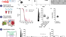 We determined the percentage of rosetting of P. cynomolgi iRBC by image stream analysis using a method adapted from Lee et al.52. Briefly, iRBCs stained with Hoechst and dihydroethidium were suspended in PBS to a haematocrit of 2% were assayed with the ImageStream 100 (Amnis, Seattle, WA) fitted with a ×60 objective. At least 200 untreated parasites for each single-stain condition were used to create a compensation matrix. During screening, 10,000 parasites were acquired and gated using the technique adopted from Malleret et al.53 along with the added selection of cells that were not singlets (one or more cells adhering to an infected cell staining positive for Hoechst). Analysis was performed with the IDEAS software (version 4.0).