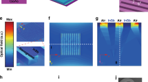 Figure 1d shows the profile of ΔT and VPTE obtained across the graphene channel. It is to be stressed that generation of such a high position-dependent ΔT at room temperature exceeds previously reported values by an order of magnitude1,2,4. A series of FEM simulations were performed to investigate the role of Fermi energy and bias voltage on the photo-thermoelectric effect (Fig. 1e). It can be seen that by increasing the bias voltage, the hot-carriers transport enhances significantly such that VPTE increases as a result of efficient carrier collection at the electrodes. Interestingly, for any bias voltage, as the Fermi energy of the graphene channel is increased from −0.55 eV to −0.8 eV, the photo-thermoelectric voltage increases and then decreases for higher Fermi energies. As mentioned earlier, increase in the Fermi energy enhances the light absorption due to the increase in available states for intraband transition which enhances hot-carrier generation, or ΔT, and also increases the electrical conductivity of graphene, which increases the Seebeck voltage VPTE; however, the resulting VPTE is also a function of Seebeck coefficient (VPTE = S(EF) ΔT) which monotonically decreases with EF. Considering these competing effects, there is a trade-off where above a threshold Fermi energy (~−0.8 eV), the effect of enhanced ΔT on VPTE is negatively impacted by the lower Seebeck coefficient that results in a decrease in VPTE. Therefore, there is an optimum range of gate (VG) and bias voltage (VSD) for the best performance of the detector associated with maximum VPTE at a desired spectral wavelength which can be observed from Fig. 1e. The predictions from FEM simulations were validated by conducting experimental measurements to quantify the photo-thermoelectric voltage generated as a function of bias and gate voltages (Fig. 1f). Photoresponse of the detector was measured by illuminating the active area with a broadband light source. An optical bandpass filter is used to eliminate other wavelengths outside of the 8–12 µm band from the broadband incident light. The experimental curves are in excellent agreement with the simulated results, which confirms that the measured signal arises from the Seebeck effect.