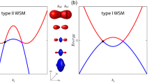 In a TWS, linearly dispersive bulk conduction and valence bands reminiscent of the dispersion of massless particles touch at an even number of Weyl points1,2,3,4,5 (see Fig. 1a, where Weyl points in momentum space resemble magnetic monopoles). In a TWS, each Weyl point is associated with a positive or negative chirality. On the surface of a TWS, exotic topological surface states (TSSs) whose FSs consist of open curves appear. The open curves are the SFAs that must originate from and terminate at the surface projection of a pair of Weyl points of opposite chirality1,2,3 (see Fig. 1a).