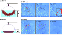where \(Q = \frac{{kz_0^2\omega _0}}{{2P_{{\mathrm{dis}}}}}\) is the quality factor of the cantilever, and Pdis is the dissipated power. For a typical MFM cantilever used in this work, k = 2.8 N m−1, z0 = 20 nm, ω0/2π = 100 kHz, Q ~ 4000, it gives Pdis ~ 8.8 × 10−14 W. From Eq. (1) one obtains that the phase drops by δθ ~ 2 deg (a typical value in our experiments, Fig. 2) correspond to variations in the oscillation amplitude by \(\delta z = 2z_0\delta \theta /(3\sqrt 3 )\sim 0.3\) nm (~1.5%). Consequently, the dissipated power Pdis changes by \(\delta P_{{\mathrm{dis}}} = P_{{\mathrm{dis}}}2\delta z/z_0 = P_{{\mathrm{dis}}}4\delta \theta /(3\sqrt 3 )\sim 2.6 \cdot 10^{ - 15}\,{\mathrm{W}}\), with a linear link between the variations of the dissipation and the phase shifts. This number is consistent with the experimentally obtained result presented in Supplementary Fig. 6.