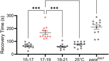 C. elegans WT (N2, Bristol strain) and transgenic animals were cultivated on either nematode growth medium (NGM) or high growth medium plates seeded with Escherichia coli OP-50-1 strain. We noted that, at elevated temperature of 25 °C, conditional transgene expression for RIS was observed also in additional, unwanted neurons, thus we kept animals (including larval stages) at 20 °C at all times. In addition, 100 µM ATR (Sigma-Aldrich) were supplemented to E. coli prior to seeding for optogenetic experiments40. Transgenic animals were generated following standard protocols. Extra-chromosomal array integration was performed by ultraviolet exposure following standard protocols.