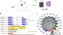 Consistent with prior work, we found that CCC complex subunits interact with components of retriever, a complex that is structurally analogous to retromer. Both retromer and retriever are trimeric assemblies that share one common subunit (VPS29), and can utilize specific SNX proteins to identify cargo in the endosomal compartment14,15,20. Although some have suggested that CCC and retriever represent one large multiprotein complex termed Commander59, data presented here indicate that the CCC complex and retriever are two separable assemblies of different sizes (~700 kDa and 250 kDa, respectively), which share VPS35L as a common subunit. Interestingly, in cell lysates both retriever and retromer have similar mobility, which in both cases is larger than the predicted trimeric assembly of their principal subunits, predicted at ~150–170 kDa.