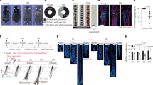 To induce Cre recombination, Tamoxifen (TAM) (Sigma-Aldrich) treatment was performed by intraperitoneal (i.p.) injection (0.1 mg/g body weight) of a 20 mg/ml solution in corn oil per day70 except for one experiment (Fig. 4j–m) in which mice were topically treated with 4-hydroxytamoxifen (4HT-TAM) (Sigma-Aldrich). Mice driven by c-Kit-CreER were injected with TAM for 3 days, mice driven by Tyr-CreER were injected with TAM for 3 or 7 days (see experiment scheme for each experiment), immunodeficient nude mice transplanted with McSCs were injected TAM for 7 days. Topical administration of 4-HT was conducted by preparing a 50 mg/ml solution of 4-HT in dimethylsulfoxide (DMSO). In total 10 μl of the 4-HT solution was topically applied on a defined area of 2 × 2 cm on the depilated back skin daily for 3 days.