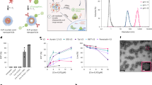To investigate if PPAA-enhanced delivery of D-DPB NPs increases intracellular cargo bioavailability, we performed a luciferase gene-silencing assay. Sequential delivery of 50 nM PPAA for 30 min followed by treatment with D-DPB NPs loaded with luciferase siRNA for 30 min achieved optimal gene-silencing bioactivity (Fig. 6d). Comparing PPAA dose-dependent gene-silencing activity to PPAA-mediated enhancement of NP uptake shows an apparent association between uptake and gene silencing activity (Fig. 6e). Although sequential delivery with doses of PPAA > 100 nM did not result in significantly increased NP uptake, it did result in enhanced gene-silencing activity, likely due to bioavailability benefits driven by the endosome disruptive activity of PPAA. We further evaluated PPAA dose-dependent effects on luciferase gene-silencing activity of nano-polyplexes of siRNA formed with newer generation, secondary amphipathic CPPs PepFect and CADY, which show potential to effectively delivery nucleic acids without the cytotoxicity associated with other cationic vectors29 (Table 1, Supplementary Fig. 21). PPAA pretreatment enhanced the gene-silencing activity of sequentially delivered 25 nM siRNA delivered as both PepFect- and CADY-siRNA polyplexes; PPAA dose response trends for both of these polyplexes very closely mirrored that seen with D-DPB NPs with maximal gene silencing at 50 nM PPAA (Supplementary Fig. 21a, b).