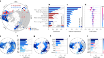 Daily temperature, precipitation and incoming radiation (both shortwave [visible and near infrared] and longwave [infrared]) were retrieved from the CRU-NCEP climatic data set30 at a spatial resolution of 0.5°. Day length was calculated for each site using the ‘geosphere’ R package60. Monthly SM (10–40 cm) was retrieved from the land data assimilation systems (GLDAS) data set (https://ldas.gsfc.nasa.gov/gldas/) aggregated at a spatial resolution of 0.5° to be consistent with the CRU-NCEP data.