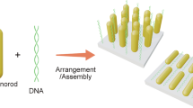 AuNRs (38 nm in length and 10 nm in diameter) were purchased from Sigma-Aldrich (Cat no 716812). Functionalization of the AuNRs with thiolated DNA (5′ HS-T12: HS-TTTTTTTTTTTT, purchased from Sigma-Aldrich) was carried out following a low pH procedure. First, thiolated DNA strands were incubated with TCEP [tris(2-carboxyethyl)phosphine] for 2 h. The ratio of DNA: TECP was 1:200. Second, the AuNRs (1 nM, 750 μL) were spun down and the supernatant was removed. The AuNRs were then mixed with thiolated DNA strands (250 μM 10 μL). In total, 845 μL modification buffer (0.59 × TBE, 0.023% SDS, pH = 3) was added. Ten microliter 5 M NaCl was added every 10 min for nine times. Fifty microliter 1 M NaOH was added subsequently to adjust the pH value to ~8, and the final concentration of NaCl reached 0.5 M. The AuNRs functionalized with DNA were then purified by centrifugation. Five times of centrifugations at a rate of 8000×g for 30 min were carried out. Each time, the supernatant was carefully removed and the AuNRs were resuspended in a 0.5 × TBE buffer containing 0.02% of SDS. The supernatant was then removed and the remained AuNRs were mixed with the DNA origami structures at a ratio of 10:1. The mixtures were annealed with the procedure of 35 °C–31 °C −1 °C/1 h, 30 °C–27 °C −1 °C/4 h, and held at 26 °C. Gel electrophoresis was used to purify the plasmonic nanoclocks with the same condition for purification of the DNA origami structures (Supplementary Fig. 13).