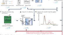 RNA was prepared as previously described13. Briefly, DNA templates were constructed through PCR assembly using primers listed in the Supplementary Table 2 and then purified with AMPureXP beads (Beckman Coulter). RNA was transcribed with T7 RNA polymerase at 37 °C for 4 h in a buffer containing 0.2 μM DNA template, 40 mM Tris·HCl (pH 8.1), 25 mM MgCl2, 3.5 mM spermidine, 0.01% TritonX-100, 40 mM DTT, 4% PEG 8000, 3 mM NTPs, and 5 U/μL T7 RNA polymerase (NEB). RNA was then purified with Zymo RNA Clean and Concentrator columns (Zymo Research) following the manufacturer’s instructions.