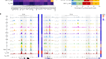 To compare motif enrichment across different cell types or peak clusters, de novo motifs derived from unique or clustered peak sets were combined and filtered using HOMER’s compareMotifs program and parameters “-reduceThresh .75 -matchThresh .6 -pvalue 1e-12 -info 1.5”, keeping only motifs that matched known motifs with a correlation > 0.85. Filtered de novo motifs (e.g., as in Fig. 4b) were then annotated back to each peak set using HOMER’s findMotifsGenome.pl using parameters “-size 200 -mknown -nomotif -h”, and results were visualized in R using the ggballoonplot function of the ggplot2 package where balloon size corresponds to motif enrichment and corresponding P values are color coded (as in Supplementary Figs. 1c, 2c, and 3c, d).