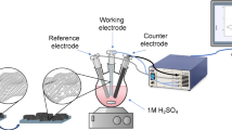 The HAN@SnO2 substrate was produced by conformally depositing SnO2 on the surface of the as-prepared HAN at 250 °C using an ALD system (Picosun, SUNALE R-150). The precursors were tin (IV) chloride (SnCl4) for tin and ultrapure water for oxygen, respectively, and high-purity nitrogen was the carrier and purging gas. Specifically, each ALD cycle consisted of a 0.2 s pulse of SnCl4 and a 4 s purge of N2, followed by a 1 s pulse of H2O and an 8 s purge of N2, and this procedure was repeated 1500 times. The growth rate of SnO2 is estimated to be about 0.16 Å per cycle. With the as-obtained HAN@SnO2 as the working electrodes, the HAN-based nanoelectrodes were fabricated through electrochemical deposition method. The HAN@SnO2@PPy electrode was prepared by electrochemical polymerization of PPy onto HAN@SnO2 substrate. The plating solution consisted of 0.1 M pyrrole monomer (98%) and 0.2 M oxalic acid, and the applied potential was 0.8 V (vs. Ag/AgCl)37. Likewise, the HAN@SnO2@MnO2 electrode was fabricated by electrochemical deposition of MnO2 onto the HAN@SnO2 substrate by using an electrolyte consisting of 50 mM manganese acetate and 100 mM sodium acetate with a constant current density of 1 mA cm−2. The active mass of the electrodes were determined according to Faraday’s law and 100% charge efficiency was assumed, according to Eq. 2: