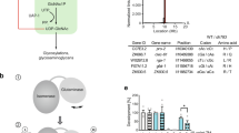 The ubiquitous hexosamine pathway (HP) is essential for aminosugar biosynthesis (Fig. 1a). Increased HP activity extends lifespan and ameliorates pathology in multiple proteotoxic disease models in the nematode Caenorhabditis elegans4. The HP converts the glycolysis intermediate fructose-6-phosphate (Frc6P) to uridine 5′-diphospho-N-acetyl-d-glucosamine (UDP-GlcNAc), using between 1% and 3% of total cellular glucose5. UDP-GlcNAc is a precursor for several important biomolecules like glycosaminoglycans and is an essential substrate for protein glycosylation reactions in mammals. Mucin-type O-glycosylation plays an important role in the extracellular matrix and N-glycosylation contributes to cellular protein homeostasis by governing the protein folding process in the endoplasmic reticulum (ER)6,7. Additionally, GlcNAc can be transferred as a single moiety to serine or threonine residues of target proteins8. This so-called O-GlcNAcylation competes with phosphorylation and fine tunes multiple processes governing cellular physiology9,10. Interestingly, O-GlcNAcylation potentially plays a critical role in several neurodegenerative disorders11. In Alzheimer’s disease, hyperphosphorylation of tau protein triggers aggregation, which is ameliorated by increasing O-GlcNAcylation12,13. Furthermore, HP activation induces a proteoprotective cellular program in C. elegans and in mice through mechanisms that are not yet fully understood4,14. Interestingly, specific single amino acid substitutions in C. elegans glutamine fructose-6-phosphate amidotransferase-1 (GFAT-1, EC 2.6.1.16), which is the rate-limiting enzyme of the HP, result in gain-of-function and in significantly increased cellular UDP-GlcNAc levels that lead to significant lifespan extension4.