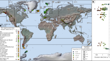 The time difference between the climate data census period and the time windows represented by some of the datapoints is a source of uncertainty, particularly for erosion rate data averaged over the last few hundred years—a period when average climate may have been cooler than for 1979–2000. Further, the spatial resolution of the dataset means that climate conditions are averaged over variable topography and environmental conditions (e.g. coast to mountains in Alaska). Despite these uncertainties, it is considered here that the homogenous dataset is an advantage in drawing out global patterns of climate and its links with glacial erosion rates36, and alternative climate data, particularly representing the last few hundred years, may also have large uncertainties.