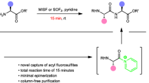 Fmoc-Asp(CSY)-OH 3 was readily prepared from commercially available Fmoc-Asp(OH)-OtBu 4 in two steps, in 80% overall yield, to provide the bench-stable amino-acid derivative. When Fmoc-Asp(CSY)-OtBu 5 was treated with an stochiometric amount of NCS, the enantiomerically pure carboxylic acid 4 was obtained in excellent isolated yield (Fig. 2e and Supplementary Fig. 6). We incorporated 3 into the resin-bound pentamer H-FDGLA-OH. Two variants were synthesized; pentamer 6a was synthesized using traditional Fmoc-Asp(OtBu)-OH and pentamer 6b was prepared with Fmoc-Asp(CSY)-OH 3. With 6b, we were pleased to observe that no aspartimide formation occurred even after incubation in 20 vol% piperidine in DMF for 12 h at room temperature. In contrast, pentamer 6a—containing the conventional Asp(OtBu) monomer—showed a high degree of aspartimide formation and piperidine substituted products (Fig. 2f, for Asp(OMpe) see Supplementary Fig. 7). These results confirmed our hypothesis that masking the carboxylic acid with a C–C bond instead of a C–O ester bond could overcome the problem of aspartimide formation.