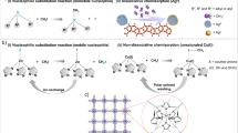 Porous organic polymers (POPs) are a class of porous materials featuring high surface areas, low densities, synthetic diversity, high chemical/thermal stabilities, etc.14,15,16,17. In light of these unique merits, a variety of POPs including conjugated microporous polymers (CMPs)18,19,20, polymers of intrinsic microporosity21,22, porous aromatic frameworks23,24, microporous hypercrosslinked polymers25,26, covalent triazine frameworks (CTFs)27,28, and covalent organic frameworks (COFs)29,30,31 have been synthesized to explore their full applications in molecular separations, gas storage, catalysis, environmental treatment, and so on. Recently, supramolecular macrocycles have been incorporated into POPs to realize specific applications32,33,34. However, these macrocycles usually act as multi-fold crosslinkers while their pre-fabricated cavities have rarely been demonstrated in POPs presumably due to their flexible skeletons (the cavity is not permanent) or monomer penetration into the cavity. We proposed that the incorporation of pillararene backbones with the reservation of their cavities into POPs might overcome the shortcomings of NACs and combines the properties and advantages of NACs and POPs. Specifically, such material might generate multiple binding sites (intrinsic pillararene cavity for host–guest interactions and extrinsic functional binding sites) for the maximization of specific guest-loading as well as abundant multi-micropores (intrinsic and extrinsic space) for rapid guest transportation by avoiding slow structural transitions.