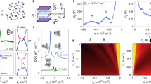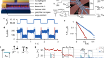 Split bottom gates are fabricated using few-layer graphene flake (less than three layers) exfoliated on SiO2/Si substrate. EBL (Jeol EBL 6300FX) and oxygen plasma etching (16 W, 30 s) are used to pattern the bottom gates. PMMA 495 A3 (1000 µC cm−2 dose, with proximity effect correction in EBL process, developed in MIBK: IPA (volume ratio 1 : 3) mixture for 30 s) is used as resist for patterning. Few examples of bottom gates are shown in Supplementary Information. The graphitic bottom gates are subsequently cleaned mechanically with Bruker SNL-10 series probe in atomic force microscopy contact mode to remove resist residues. Van der Waals stacking method is exploited: hBN, BLG, and hBN flakes with proper thickness are picked up and release atop bottom gates. Top gates are fabricated in high-resolution mode in Jeol EBL, with alignment mismatch <5 nm (see Supplementary Information). SEM images are captured to check split gap size. Then the device is etched in reactive ion etcher into 1 μm width ribbon. Finally, edge contact technique is used to contact the fully encapsulated device. Field-effect electron mobility is extracted from fitting the curves in Supplementary Fig. 8.