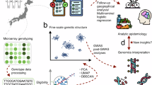 We genotyped the individuals with the Illumina HumanOmniExpressExome BeadChip or a combination of the Illumina HumanOmniExpress and HumanExome BeadChips. Individuals who were identified as having a non-Japanese origin either by self-reporting or by PCA were excluded from the study39. Individuals with age < 18 or with low genotyping call rates (<98%) were additionally excluded39,40. For quality control (QC) of genotypes, we excluded variants that met any of the following criteria: (1) call rate < 99%, (2) P value for Hardy–Weinberg equilibrium < 1.0 × 10−6, and (3) number of heterozygotes < 539,40. Genotype data from a total of 171,893 individuals of Japanese origin proceeded to the further analysis. Haplotype phasing on all 171,893 individuals was performed with Eagle (version 2.3)41 with default settings, to reduce the switch error rate. Any missing genotypes were imputed in the process of phasing.