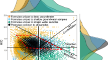 Concentrations of DOC and total dissolved nitrogen (TDN) were determined using high-temperature oxidation performed on a Shimadzu TOC analyzer fitted with a total nitrogen module for chemiluminescence detection of nitrogen. Inorganic nitrogen (NO3− and NH4+) was analyzed on a Seal-QuAAtro inorganic nutrient analyzer. Concentrations of DON were calculated as the difference between TDN and inorganic nitrogen. NO3− measurements made on the Seal-QuAAtro are the equivalent to NO3− plus NO2−. All 35 groundwater samples were measured for DOC, whereas the 20 samples collected in 2014 and 2015 were measured for DON (Supplementary Data 1). Riverine DOC and DON concentrations near Kaktovik Lagoon were estimated using the average of samples collected in August 2011 from the Hulahula (n = 1), Jago (n = 1), and Okpilak (n = 2) rivers in ref. 43. In the case of the Okpilak River, two samples were averaged prior. Collective DOC and DON concentrations of north flowing rivers at their outlet from along the North Slope of Alaska were estimated using the average of data from the Turner (n = 1), Okpilak (n = 4), Hulahula (n = 1), Jago (n = 1), Canning (n = 1), Kuparuk (n = 5), Sagavanirktok (n = 5), and Colville (n = 3) rivers between July and the end of September 2006–2012 in ref. 43.