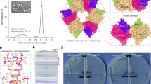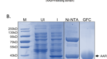 The AAR gene (Synpcc7942_1594, gene ID:3775018) from the complete genome of Synechococcus elongatus PCC 7942 (Genbank ID:CP000100.1), was synthesized (GeneScript, China) and cloned (Supplementary Tables 1 and 2) into the modified version of vector pET24a (Novagen), that encodes a tobacco etch virus (TEV) protease cleavage site with the sequence of ENLYFQG, followed by a downstream 21-residue peptide, including a His(6)-tag with the sequence of SMNSSSVDKLAAALEHHHHHH. Upon verification of the correct sequence, the plasmid containing AAR gene was transformed into E. coli strain BL21(DE3) (TransGen Biotech) along with the plasmid pG-KJE8 (TaKaRa), which encodes five molecular chaperones of dnaK, dnaJ, grpE, groES, and groEL. The transformed cells were cultured in Luria–Bertani medium containing 50 µg mL−1 kanamycin, 34 µg mL−1 chloramphenicol, 2 mg mL−1 L-arabinose, and 5 ng mL−1 tetracycline in shake flasks at 37 °C.When the optical absorption density at 600 nm (OD600) reached 0.8–1, the expression of AAR was induced by addition of 1 mM IPTG (isopropyl β-D-1-thiogalactopyranoside) and continued shaking at ~200 rpm for overnight at 20 °C. The cells were harvested and disrupted by ultra-sonication in lysis buffer containing 50 mM Tris-HCl, pH8.0, 500 mM NaCl, 1 mM TCEP (tris (2-carboxyethyl)phosphine), 10% glycerol, 1 mM PMSF (phenylmethylsulfonyl fluoride), 5 mM KCl, and 2 mM MgCl2 and 10 mM imidazole. Cell debris was discarded after centrifugation at 38,000 × g for 30 min at 4 °C. The supernatant containing the expressed AAR protein with His-tag (AAR-His) was loaded onto a Ni affinity column (GE Healthcare) pre-equilibrated with lysis buffer. The AAR-His protein was then washed and eluted with the lysis buffer containing 50 mM and 300 mM imidazole, respectively. To obtain the His-tag-free AAR protein, AAR-His eluted from the Ni affinity column was treated with TEV protease for 12 h at 4 °C, and then flown through the Ni affinity column. This treatment removes the C-terminal 22-residue peptide, including the His-tag, encoded by the vector, thus results in the AAR protein alone (AAR). Both AAR-His and AAR proteins were further purified through size-exclusion chromatography with elution buffer of 10 mM HEPES (pH 7.5), 50 mM NaCl, 5 mM KCl, 2 mM MgSO4, and 1 mM TCEP. The protein was concentrated to ~30 mg mL−1 through measuring its absorption at 280 nm using a calculated extinction coefficient of 43,430 M−1 cm−1 (http://ca.expasy.org). SeADO gene (Synpcc7942_1593, gene ID: 3775017) from the complete genome of Synechococcus elongatus PCC 7942 (Genbank ID:CP000100.1) was constructed (Supplementary Tables 1 and 2) and expressed similarly as that of SeAAR gene, except that the chaperone-encoded plasmid pG-KJE8 (TaKaRa) was not used. The expression of ADO protein was induced by adding 1 mM IPTG, 1 mM FeSO4, and shaken at 30 °C for 5 h. The cells were disrupted by ultra-sonication in lysis buffer containing 20 mM Tris-HCl, pH8.0, 1 mM TCEP, 500 mM NaCl, and 10 mM imidazole. The supernatant after centrifugation was loaded onto a Ni affinity column (GE Healthcare) pre-equilibrated with lysis buffer. The ADO protein was washed and eluted with the lysis buffer containing 50 mM and 300 mM imidazole, respectively. The eluted ADO protein was treated with TEV protease overnight at 4 °C, and then flown through the Ni affinity column to remove the His-tag, and further purified through size-exclusion chromatography with elution buffer containing 20 mM Tris-HCl, pH8.0, and 1 mM TCEP. All mutant plasmids used in this experiment were constructed with the pET24a plasmid of wide type, namely pET24a-AAR and pET24a-ADO by PCR (polymerase chain reaction), with primer sequences shown in Supplementary Table 2. The mutations of the target gene were verified by sequencing. The overexpressed AAR and ADO mutant proteins were purified using the same protocol as the wide-type AAR and ADO proteins, respectively. The purity of all the wild type and mutant forms of AAR and ADO are verified through SDS–PAGE.