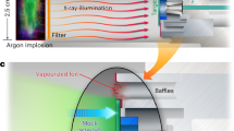 Asymmetry in crater development produces differences in central crater structure in the uprange and downrange directions. While the centre of the simulated peak ring appears to be consistently offset downrange of the crater centre by ~5% of the crater diameter in the three oblique impacts, the centre of the mantle uplift is offset uprange of the crater centre in the \(6{0}^{\circ }\) impact and, to a lesser extent, the \(4{5}^{\circ }\) impact; and is offset downrange in the \(3{0}^{\circ }\) impact (Fig. 5). This pattern of mantle-uplift offset relative to the final crater rim is a consequence of the corresponding change in the offset of the deepest part of the transient crater relative to the centre of the final crater. Geophysical observations at Chicxulub suggest the peak-ring and mantle-uplift centres are offset in different, approximately opposite directions from the crater centre (Fig. 1). Uncertainty in the precise locations of the centres of the crater, peak ring and mantle uplift (Supplementary Fig. 1), as well as uncertainty in the crater diameter25, contribute to an approximate uncertainty of 26% and 48% for the relative offset of the peak ring and mantle uplift, respectively (grey bands in Fig. 5). Comparison of these observations with our simulation results suggests that the observed configuration is most similar to the \(6{0}^{\circ }\) impact simulations (or possibly the \(4{5}^{\circ }\) impact simulation at 20 km/s; Fig. 5).