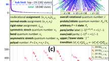 The list of lines predicted from the paths of Figs. 2 and 3 may act as frequency standards63 over a wide range, helping future high-resolution experiments. This is especially true for those 30 pairs of predicted transitions whose separation is <0.01 cm−1, which cannot easily be resolved via Doppler-broadened measurements. These highly accurate calculated lines, having two or three orders of magnitude smaller uncertainties than their former determinations, give us the opportunity to validate less accurate measurements and reveal individual and systematic (e.g., pressure-shift) effects in their line positions. Such an examination is mostly important for the THz regime, where the usually applied experimental techniques provide a few times 10−6 cm−1 accuracy for the detected transitions. The complete set of predicted lines is presented in Fig. 8. An assessment of the literature data sources corresponding to our predicted lines is provided in Supplementary Note 6 and Supplementary Fig. 3.