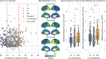 Participants of this study represented a selection of individuals from two large multi-center studies: the Swedish BioFinder Study (BioF; http://biofinder.se/) and the Alzheimer’s Disease Neuroimaging Initiative (ADNI; http://adni.loni.usc.edu). Both studies were designed to accelerate the discovery of biomarkers indicating progression of Alzheimer’s disease pathology. Participants were selected based on the following inclusion criteria: participants must (i) have a Flortaucipir-PET scan, (ii) have either a β-amyloid-PET scan (for ADNI: [18F]-Florbetapir, for BioF: [18F]-Flutemetamol) or lumbar puncture measuring CSF Aβ1–42. In addition, participants were required to be cognitively unimpaired, have a clinical diagnosis of mild cognitive impairment, or have a clinical diagnosis of Alzheimer’s dementia with biomarker evidence of β-amyloid (Aβ) positivity. For both cohorts separately, PET-based Aβ1–42 positivity was defined using mixture modeling, as previously described5. For BioFINDER, β-amyloid1–42 positivity was defined as an (INNOTEST) level below 650 ng/L67. All participants fitting the inclusion criteria with Flortaucipir scans acquired (BioFINDER) or that were available for public download (ADNI) in May 2018 were included in this study. In total, across both studies, 162 cognitively unimparied individuals, 89 individuals with mild cognitive impairment, and 61 amyloid-positive individuals with suspected Alzheimer’s dementia were included. Demographic information can be found in Table 1, whereas a detailed comparison of BioFINDER and ADNI cohorts can be found in Supplementary Table S1. BioFINDER subjects were on average less educated than ADNI subjects, and included a higher proportion of amyloid-positive individuals. All BioFINDER subjects provided written informed consent to participate in the study according to the Declaration of Helsinki; ethical approval was given by the Ethics Committee of Lund University, Lund, Sweden, and all methods were carried out in accordance with the approved guidelines. Approval for PET imaging was obtained from the Swedish Medicines and Products Agency and the local Radiation Safety Committee at Skåne University Hospital, Sweden. Information related to participant consent in ADNI can be found at (ADNI; http://adni.loni.usc.edu).