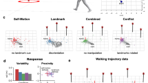 Equations (3) and (4) are equivalent if the walking velocity |v| is truly constant across trajectory segments and trials. If the walking velocity does vary, holding the transformed parameters (5) fixed assumes that the path integration error of the internal location estimate mainly depends on the traveled distance, whereas the original model (3) assumes that the path integration error mainly depends on the elapsed walking time. In what follows, we will choose the distance model and hold the transformed parameters (5) fixed, in line with previous modeling of human path integration17,18. We also explicitly test that the distance model is better supported by the data than the time model (see “Results” section and Fig. 4a).