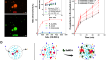 The activity of MDH was measured using a spectrophotometer at 340 nm by analyzing residual concentration of NADH (extinction coefficient of 6.22 mM−1 cm−1)51. The relative activities of MDHs in comparison with the activity of MsMDH were measured using 0.5 mL of reaction mixture containing 0.1 M Tris–HCl at pH 7.0, 200 μM NADH, 100 μM oxaloacetate, and 3 nM of various MDHs. For measurement of activity at various pH, the same reaction mixture containing 0.1 M BIS-Tris or CHES buffer were used for pH 5.0–6.0 and 9.0–10.0, respectively, instead of 0.1 M Tris–HCl. Based on the plotted kinetic data, the kinetic parameters were determined from non-linear regression analyses based on the modified Briggs-Haldane equation35,52 using OriginPro 2019 software (OriginLab, Northampton, MA, USA). All experiments were performed in triplicate at room temperature.