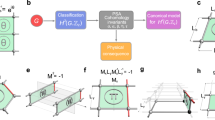 According to ref. 26, the TQPT between the QSH insulator and the NI (distinguished by the Z2 index) occurs when the mass m in h±,0(q) changes its sign. The argument used to determine change of the Z2 index was presented in ref. 27 and is discussed below for integrity. Since there is no inversion symmetry in PG p1, the Z2 index can be determined from the CN of the contracted half first Brillouin zone (1BZ), where the half 1BZ is chosen such that its Kramers’ partner covers the other half. Specifically, the Z2 index is changed (unchanged) by the GC if the CN of the contracted half 1BZ changes by an odd (even) integer. Without loss of generality, let us choose the half 1BZ to contain k0, as shown in Fig. 1a. Since h+,0 is a 2D gapped Dirac Hamiltonian, the CN of the contracted half 1BZ changes by \(\Delta {N}_{+}=-{\rm{sgn}}({v}_{x}{v}_{y})\) as m increases from 0− to 0+, featuring a direct QSH-NI TQPT as vxvy is typically nonzero.