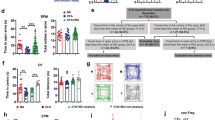 Chronic inflammatory pain was induced in mice by treatment with complete Freund’s adjuvant (CFA)13,26, and von Frey monofilaments were used to assess mechanical hyperalgesia13,34. Though the mice exhibited a 50% decrease in paw withdrawal threshold just 1 h after CFA injection (Supplementary Fig. 1a), they did not show anxiety-like behaviors (Supplementary Fig. 1b, c). Three days after CFA injection, mechanical hyperalgesia (Fig. 1a) was observed, and it was accompanied by decreased distance in the center in the open field (OF) test (Fig. 1b) and reduced time in the open arms in the elevated plus maze (EPM) test (Fig. 1c), indicating that anxiety-like behaviors were induced by chronic pain. CFA-injected mice exhibited locomotor activities similar to those of normal saline (NS)-injected mice (Fig. 1b, c). Moreover, time course experiments showed that mechanical hyperalgesia and anxiety-like behaviors were persistent until 20 days after CFA injection (Supplementary Fig. 1d–i). At day 28, the anxiety-like behaviors disappeared along with chronic pain (Supplementary Fig. 1j–l).