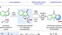 The past decade has seen a surge of developments in visible-light photocatalysis17,18,19,20. A number of elegant syntheses have been reported based on electron transfer (ET) photoredox processes21,22,23,24,25,26. Meanwhile, energy transfer (EnT) processes have drawn attention as an alternative visible-light photocatalysis in an increasing number of transformations27,28,29. For example, synthesis of N-heterocycles via sensitization of azido compounds30,31,32,33,34,35 and isomerization of alkenes36,37,38 have been described. Also, alkene–alkene [2 + 2] cycloaddition for the synthesis of cyclobutanes in inter- and intramolecular fashion based on the EnT process has been reported39,40,41,42,43,44,45,46. Meanwhile, only a limited number of studies on the alkyne–alkene reactions with visible light photocatalysis have been reported. Very recently, Glorius47 and Maestri48 groups described novel alkyne–alkene reactions under visible light photocatalysis.