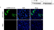 Human embryonic kidney cells, 293T were cultured and transfected as described previously42. 293T cells were transfected with pDNA using TurboFectin8.0 (OriGene) transfection reagent following the manufacturer’s protocol. Forty-eight hours later cell lysates were harvested using modified RIPA cell lysis buffer. Proteins were separated on a 4–12% BIS-TRIS gel (ThermoFisher Scientific), then following transfer, blots were incubated with an anti-SARS-CoV spike protein polyclonal antibody (Novus Biologicals) then visualized with horseradish peroxidase (HRP)-conjugated anti-mouse IgG (GE Amersham).