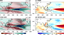 Model errors in simulating the observed climate can degrade the reliability of regional projections14. Two well-known chronic biases in current climate models are a cold tongue bias in the equatorial Pacific15,16,17 and the poorly simulated stratocumulus clouds over the tropical and subtropical oceans18,19,20,21,22. These biases in simulations of the historical climate can lead to uncertainties in the simulated surface warming patterns23,24 and climate sensitivity under GHG forcing25,26. These are also potential sources of uncertainty for the projections of WNPSH as the WNPSH is strongly modulated by sea surface temperature (SST) anomalies (such as El Niño)1,3,6,7,9 and land–sea thermal contrast27,28,29.