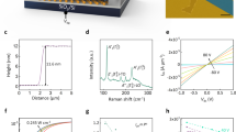 Here, the demonstration of the InSe artificial synaptic features in device level was inspired by the specific electrical behaviour of the surface-doped InSe FET under an ambient atmosphere, and its schematic structure is shown in Fig. 1a. Note that the electrical characteristics for InSe FETs with/ without surface doping effect were provided in Supplementary Fig. 1 for comparison38. The exfoliated InSe flake was intentionally selected as 10–20 layers under optical microscopy (OM) for improved device properties41. Its typical thickness was examined to be around 13.8 nm by the topographic scan profile of atomic force microscopy (AFM) (Fig. 1b). In consideration of the ultrahigh sensitivity to moisture and oxygen for InSe, first, we characterized the basic electrical performance of the fabricated InSe FET to explore the underlying charge transfer differences between ambient (InSe A-FET) and vacuum (InSe V-FET) conditions. All of the statistical transfer curves and the gate leakage in Fig. 1c and d for 15 representative InSe FETs under two conditions indicated the typical electron-conduction behaviour in the InSe channel. Along the sweep directions of gate voltage varying between −80 and +80 V, the recorded transfer curves for InSe V-FET exhibited weak electrical hysteresis loops. Such a slight positive shift of the threshold voltages below 20 V in backward gate sweeping can be attributed to the charge transfer effect instead of capacitive gating effect due to the few interface states between the channel and dielectric layer or fabrication-induced defects42,43,44,45,46. While immersing the same 15 devices in ambient conditions, the observed transport windows were consistently enlarged, which indicated the boosted electrical hysteresis phenomena. Figure 1e shows the corresponding statistical threshold voltage shift under different conditions based on 25 InSe FETs. Its average value in the InSe A-FET approached 100 V, hinting at the existence of unique charge trapping and releasing events in the InSe channel owing to the possible native oxidation of InSe under ambient conditions, which will not occur under vacuum conditions. To preliminary verify the hypothesis of the native oxidation event, the specific experiments were intentionally designed to detect the variation of the transfer curves for InSe FET depending on the exposing time and immersing conditions47. On the one hand, Supplementary Fig. 2 shows the evolution of transport windows along with the exposing time under ambient conditions. Initially, a narrow window in the transfer curve for InSe FET can be observed under vacuum conditions. With the increase of the exposing time under ambient conditions, the obtained hysteresis loop gradually enlarged and then saturated with a window of about 90 V. Moreover, such a wide hysteresis loop under ambient conditions over 2 h can still be well-retained without obvious variation, even when storing it back to vacuum conditions again, which minimizes the impact of the physical absorption of gas molecules48. On the other hand, when storing a fresh sample in the nitrogen (N2) or argon (Ar) atmosphere for around 30 minutes, the measured transport windows are almost fully consistent with that of InSe V-FET (Supplementary Fig. 3). While in the case of dry air, it presents an enlarged hysteresis loop, even being stored back to the vacuum conditions, suggesting the weak influence of the hydrolysis effect on the InSe channel. In consequence, it is believed that the enhanced hysteretic behaviours in InSe A-FET are dominated by the native oxide layer under ambient conditions. It is worth noting that the excellent electrical properties of InSe A-FET, which include high on current, on-off current ratio, and good Ohmic contact (see the corresponding output curves in Supplementary Fig. 4), were maintained compared with those in InSe V-FET, without obvious electrical degradation. In terms of the above, such an intriguing electrical hysteresis behaviour in the InSe A-FET not only motivates more efforts in exploring the underlying charge trapping mechanisms but also suggests its potential use in memory systems49,50.