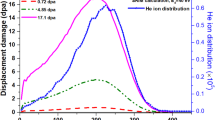 where Di and Dv represent interstitial and vacancy diffusivity, respectively, and Ci and Cv are site concentrations of interstitials and vacancies21. When there is no irradiation, the total diffusion flux of interstitials \(\left({D}_{{{{\rm{i}}}}}{C}_{{{{\rm{i}}}}}\right)\) is negligible due to the very low concentration of thermal interstitials, typically at least 106 times lower than the corresponding vacancy flux22. However, the presence of irradiation will change this.