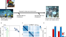 As in the in situ experiment, tidal transcripts were related to cellular and metabolic processes (Supplementary Fig. 2f). In addition, 12% of the GO entries in the enrichment analysis were related to responses to stimuli (DNA damages, endogenous, biotic and chemical stimuli among others; Supplementary Data 2c). Daily transcripts covered a range of cellular and metabolic processes (Supplementary Fig. 2g); gene expression GO terms were well represented, indicating that biological cycles can influence many physiological functions (Supplementary Data 2d). Again, two contigs annotated to Bathymodiolus sp. symbionts were present in the list of daily transcripts but none in the list of tidal transcripts.