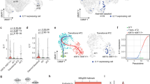 Cell frequency dynamics showed an expansion of T cells early after injury at day 3 (Fig. 1b), recruitment of Ly6c2+ monocytes from blood within the first weeks after injury (Fig. 1f), the appearance of Arg1; +M2-macrophages peaking at day 10 (Fig. 1c), transient formation of Acta2+ myofibroblasts (Fig. 1d; Supplementary Fig. 3), and appearance of a Mfge8+ resolution macrophage state peaking at day 28 (Fig. 1e). Subclustering macrophages revealed several distinct phenotypes at different time points (Supplementary Fig. 4a–c). Previously published bulk RNAseq signatures from lineage tracing of monocyte-derived macrophages in the bleomycin model8 were used to score individual cells, revealing that recruited monocytes give rise to several different macrophage identities (Supplementary Fig. 4d–g).