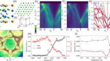 We perform electronic structure calculations within the framework of the density functional theory using norm-conserving pseudopotentials33 as implemented in the Quantum Espresso simulation package34. The exchange–correlation effects are treated within the local density approximation with the Perdew–Zunger parametrization35. The electronic calculations used a plane-wave energy cutoff of 80 Ry and a 12 × 12 × 12 Γ-centered k-mesh to sample the Brillouin zone. Total energies were converged to 10−7 Ry in combination with Methfessel–Paxton type broadening of 0.01 Ry. The phonon calculation is done by using a 2 × 2 × 2 q-mesh grid centered at Γ for the sampling of phonon momenta. Starting with the experimental structure, we have fully optimized both the ionic positions and lattice parameters until the Hellmann–Feynman force on each atom is <10−3 Ry/a.u. (10−4 Ry) and zero-stress tensors are obtained. We find that the flat-band phonon is mainly associated with the vibrations of Co atoms in Co3Sn lattice confined to the line connecting the centers of two neighboring triangles as shown by the dotted line in Fig. 5a. Figure 5b shows the atom displacement resolved phonon band structure.
