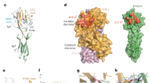 This response was further investigated by co-expressing Btnl1 in 293T cells with Btnl4 alleles mutated in each of three regions whose counterparts in Btnl6 are implicated in Vγ7 engagement (Fig. 4a)19. Specifically, the Btnl4 sequences were replaced by counterparts from Btnl1, in one case via the substitution of a single amino acid. Those mutations essentially ablated the TCR downregulation and CD69 upregulation ordinarily induced by Btnl1 + Btnl4 in a human T-cell line, J76, expressing a monoclonal Vγ7Vδ4 TCR (Fig. 4b). Thus, Btnl4 can phenocopy Btnl6 in co-operating with Btnl1 to regulate Vγ7+ IEL, albeit that no IEL depend on Btnl4 for their maturation, as shown above.