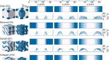 Figure 1d further highlights that the orthogonal chemical reactions and difference in relative reaction speeds allow for the sequential fabrication of the two networks. In situ tracking of functional groups via photo-differential scanning calorimetry (photo-DSC) and Fourier transform infrared spectroscopy (FTIR) enable measurement of the depletion of crosslinking groups. Consistent with the high yield expected in click chemistry, the initial photoirradiation (He ~ 600 mJ cm−2) consumes 94% of the thiol groups during the formation of the green body (Supplementary Fig. 1). Similarly, the observed conversion of –OR groups corresponds in time to the formation of the second set of plateaus in G′ and G″. These initial experiments and the glass transition measurements (Supplementary Fig 1c) confirm that the intersystem crosslinking is negligible, which preserves the individual performance of the two constituent systems.