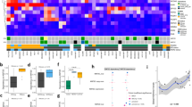 To further determine the role of TET2 in breast tumorigenesis, we generated a Tet2-deletion breast cancer mouse model by breeding our Tet2-deletion mouse model (MMTV-Cre;Tet2f/+) with an established breast cancer mouse model, MMTV-PyMT (PyMT). PyMT mouse expresses polyoma middle T (PyMT) oncogenic protein in mouse mammary epithelium and develops spontaneous luminal-like ER-positive premalignant mammary lesions and adenoma at 4–6 weeks of age, which further progresses to ER-negative mammary carcinoma around 8–12 weeks of age, along with spontaneous lung metastases by 12 weeks of age in PyMT mice32. We collected the mammary glands from Tet2f/+;PyMT (WT-PyMT) and MMTV-Cre;Tet2f/+;PyMT (MUT-PyMT) at 5 weeks of age to verify the effects of Tet2 deletion on the early onset of mammary tumor development. The data revealed that MUT-PyMT accelerated development of highly proliferative mammary carcinoma at 5 weeks of age when WT-PyMT had only pre-malignant lesions (Fig. 4a, Supplementary Fig. 3a–c, tumor-free survival: WT-PyMT 8 weeks vs. MUT-PyMT 5 weeks; Ki67-positive cells: WT-PyMT 3.7% vs. MUT-PyMT 11.7%). Compared with WT-PyMT, Tet2 deletion led to lost ERα expression in MUT-PyMT mammary glands (Fig. 4a, Supplementary Fig. 3d, ERα-positive cells: WT-PyMT 10.8% vs. MUT-PyMT 1.8%). Loss of TET2 also increased the basal MaSC-enriched cell population (Fig. 4b, MaSCe, WT-PyMT 10% to MUT-PyMT 18%) and resulted in aberrant lineage commitment with a mixed bi-lineage phenotype (Fig. 4c, d, CK8+CK14+ double-positively stained cells: WT-PyMT 3.7% vs. MUT-PyMT 24%).