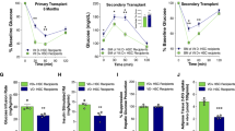BM cells were isolated from the femurs and tibias of 8–10-week-old mice by flushing the bones with cold PBS13. The total bone marrow was washed, triturated using a 24-gauge needle (Benson Dickson), collected by centrifugation at 200 × g for 4 min, and diluted with PBS. After lysis of erythrocytes using 0.05% sodium azide, cells were counted to obtain a defined concentration of unfractionated bone marrow. Eight-week-old recipient mice were lethally irradiated with 10 Gy from a cesium-137 γ-cell irradiator. Within 6 h after irradiation, recipients were reconstituted with ~5 × 106 donor marrow cells via a single injection. The donor marrow was allowed to repopulate for 8 weeks after transplantation prior to assessment. For estimating engraftment, the total bone marrow was isolated from the femurs and tibias from C57BL/6-TgN (GFP-positive) (Jax/Lab 003291) mice in the same background in parallel for each transplant experiment. FACS quantification of the percentage of GFP positivity in peripheral leukocytes revealed engraftment of 85–92%. In BM recipients of KODMAC/miR-106b−/− or KODMAC/miR-106b+/+, the degree of engraftment was performed by using C57BL6 45.2 donors and 45.1 recipients to confirm engraftment in the experimental animals (CD45.1 and CD45.2 antibodies, Biolegend, Inc). Flow-cytometry quantification of the percentage of 45.2 positivity in peripheral leukocytes or recipients revealed engraftment of 88–96%, implying reduction in Vdr or miR-106b expression to 4–12% of baseline.