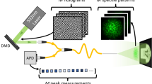 Our experimental setup for single pixel imaging (Fig. 1j) is similar to the computational ghost imaging system presented in the ref. 18, where a spatial light modulator projected random patterns of light onto a test object and detectors measured the fraction of power transmitted through the object. In our experiment the spatial light modulator was replaced with the PL, allowing Np = Ns = 121 different patterns to be projected onto the object by exciting each core of the MCF individually. The experimental data acquisition procedure consisted of two steps. First, a camera was used to record the patterns generated in the object plane by exciting each of the cores individually. In the second, the object was moved into the beam path and a detector was used to record the magnitude of the light transmitted through the object. These pairs of data (patterns + transmission values) are the data used with the SARA–COIL algorithm (further details of the experimental setup and data acquisition procedure are presented in the “Methods” section). We highlight the fact that the MCF was intentionally moved and deformed significantly between pattern calibration and imaging experiments, to further highlight the stability of the PL approach.