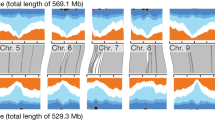 The genomic makeup of the accessions was analyzed with ADMIXTURE76. Figure 5a shows the result for K = 3, which was used to analyze the populations. To resolve admixture along chromosomes, we identified 1283,756 species-specific SNPs in the nonrepetitive regions of 19 chromosomes from fixed differences between the two species as represented by 4 diploid exemplar genomes without evident admixture as described in Supplementary Note 9. These ancestry-informative markers were used to obtain a high-resolution admixture map for the WGS accessions (Fig. 5c), following the method of Wu et al.77. A subset of these ancestry-informative markers that overlapped RAD-seq variants were used to infer the segmental ancestry of the RAD-seq accessions. Further details are provided in Supplementary Note 9 and Supplementary Data 10.
